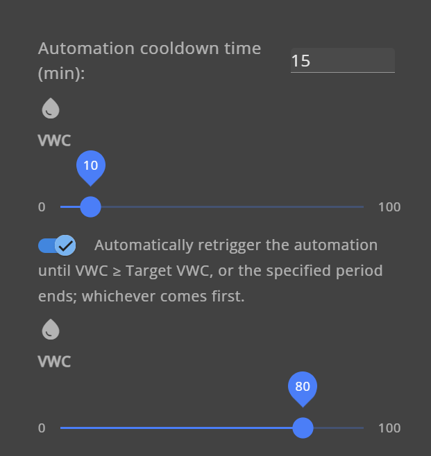 1: can I set alternate parameters for the P1? For example, if VWC is <60% then begin P1 program after 1 hour of lights turning on. The overriding parameter being that if VWC is >60% then pause P1 until VWC dryback target is achieved.